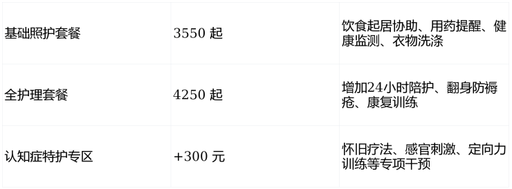 A:费用按房型+护理等级划分,公开透明: