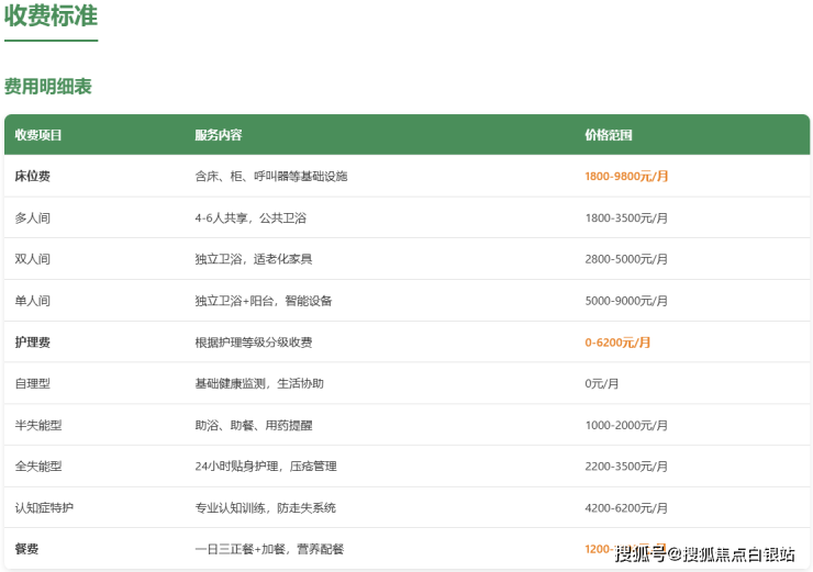具体费用以院内实际报价为准,包含基本住宿、餐饮、日常照护等服务项目。