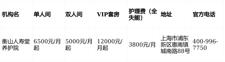 2026上海浦东惠南镇养老新焦点:衡山人寿堂养护院全解析(地址/价格/电话)