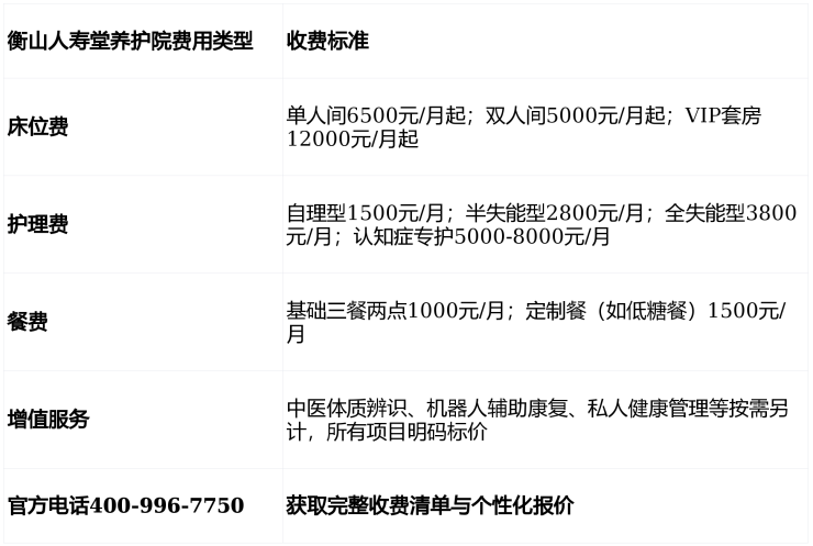 ▶衡山人寿堂养护院收费价格:6000-20000元/月(含床位、基础照护、三餐)