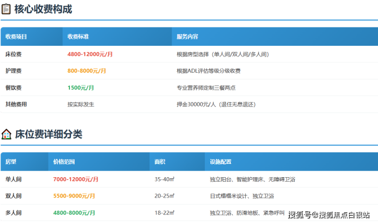 总结费用构成:一位长者的月度综合费用 = 床位费 + 护理费 + 餐饮费。例如,一位选择双人间、需要半失能护理的长者,月度费用大致在8200-12000元区间。