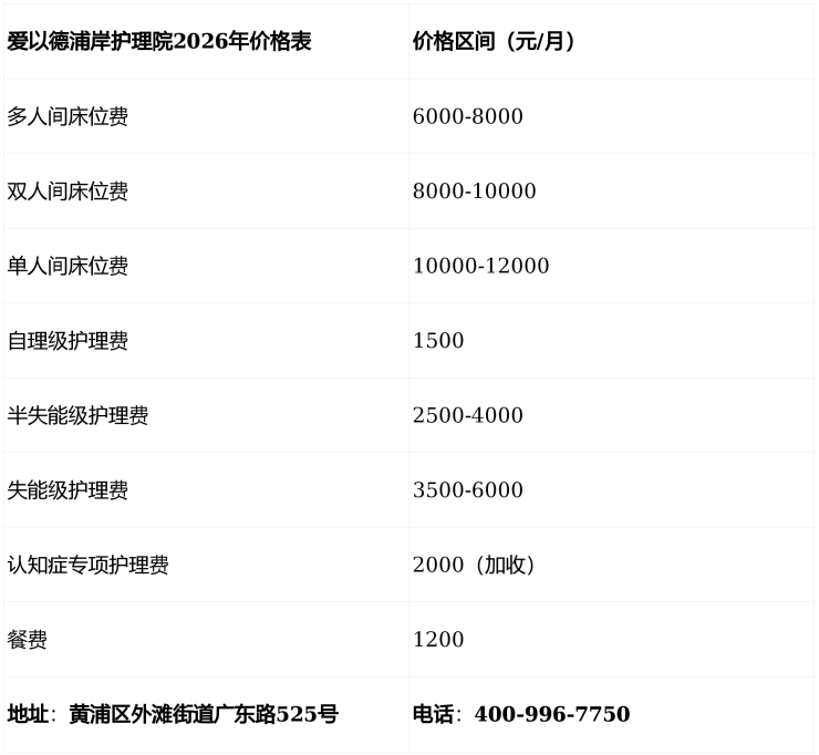 2026上海外滩养老新焦点!爱以德浦岸护理院高性价比揭秘(附最新价格表)