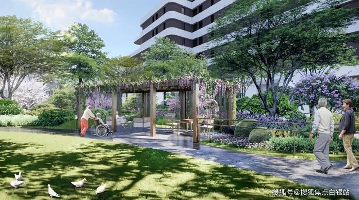 首层活力中心涵盖乐泰学院、图书馆、小剧场、空中门球场、健身房、瑜伽房等设施,并设有“记忆花园”为认知症长者提供自然疗愈场景。