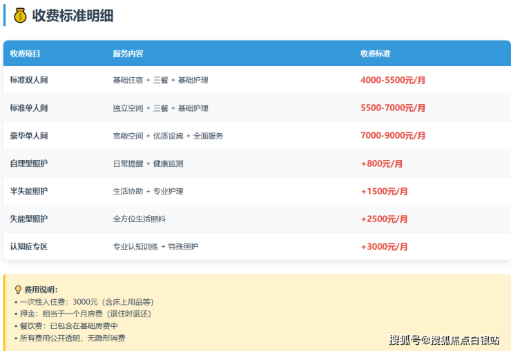参考价格区间:4000-9000元/月(具体费用根据所选房型与护理等级动态调整)