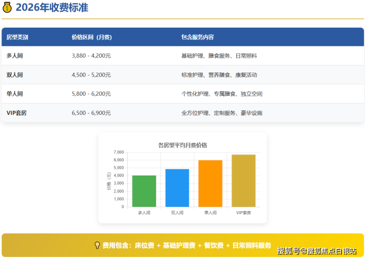 了解护理院的收费情况是选择的重要依据,以下是上海金色怡福护理院的收费结构: