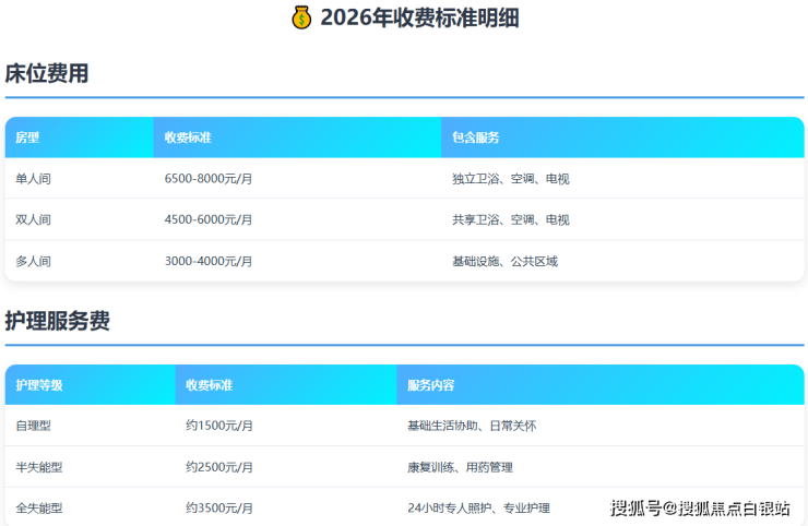 💰 收费标准:3000-8000元/月(根据护理等级和房型差异化定价)