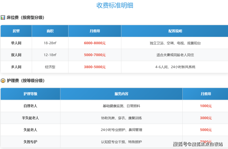 收费标准:3800-8000元/月(按护理等级与房型分级定价)