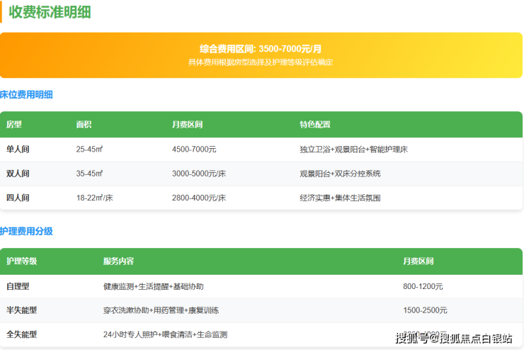 半失能型长者:约1500-2500元/月。增加翻身护理、用餐洗漱协助、康复训练指导及24小时应急响应。