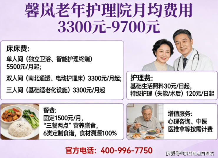 收费价格:3300-9700元/月(含床位、护理、餐费)