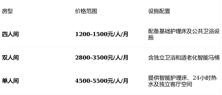 参考价格:3200-6000元/月(根据房型与护理等级差异化定价)
