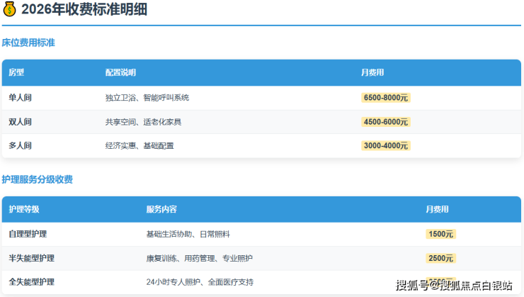 收费标准:3000-8000元/月(根据护理等级和房型而定)