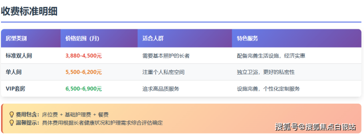 重要提示:以上为参考价格区间,最终费用需根据长者入住前的专业健康评估结果确定。评估将由护士、康复师等多学科团队进行,确保制定的照护方案与收费完全匹配长者的实际需求。有任何费用疑问,请随时致电400-855-0290获取个性化报价单。