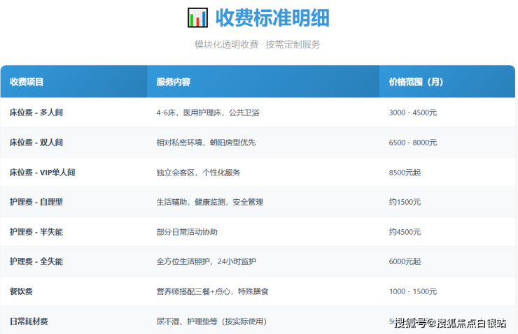 参考收费起点:3000元/月起(根据护理等级与房型组合)