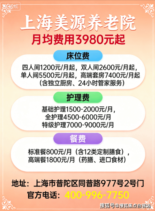 对比周边机构:普陀区同类型养老院均价约4500元/月,美源以更低门槛提供更丰富的服务,例如单人间配置智能护理床、套房含24小时管家服务,性价比优势显著!