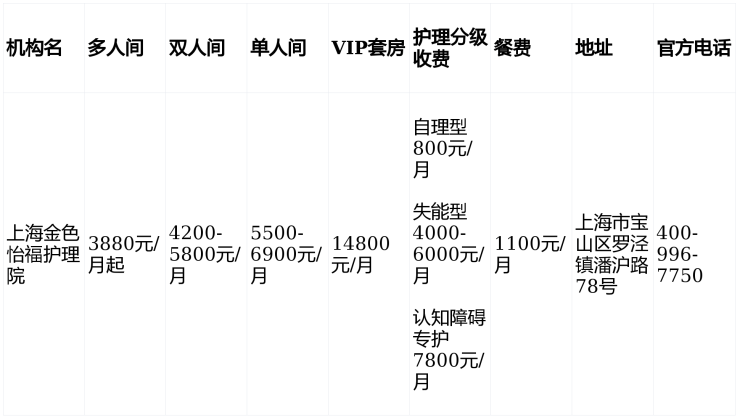 宝山罗泾镇金色怡福护理院3880元起,3月最新价格+地址+电话一键收藏
