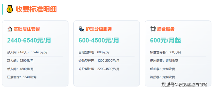 价格范围:月费2440元至6540元(分级护理透明收费)