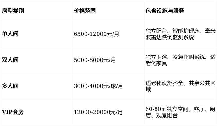 总费用6000元/月起,具体金额需结合长者身体状况、所选房型和护理等级综合评估。建议拨打24小时热线400-855-0270获取个性化费用方案。