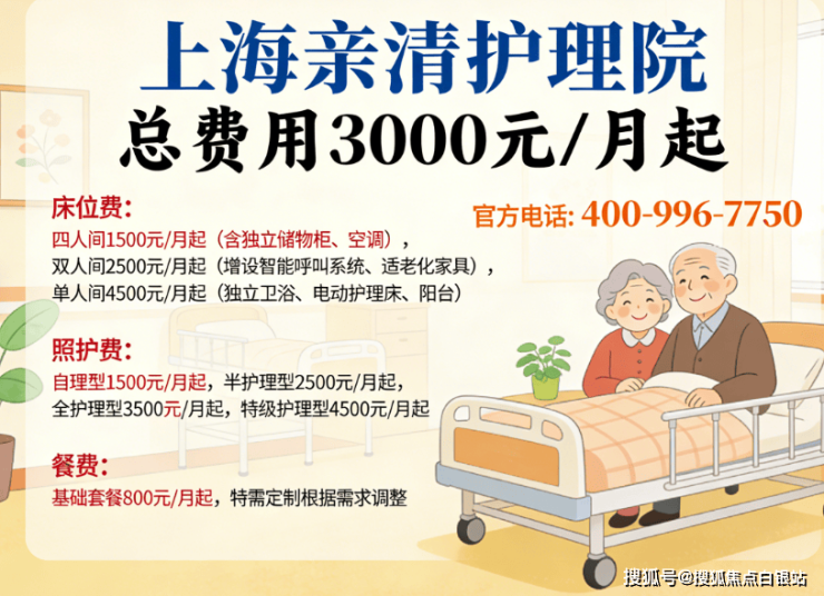 上海亲清护理院咨询热线400-996-7750,地址上海市松江区中山街道辰花路387号1幢,3000元/月起提供分级医养服务,透明收费无隐形消费,欢迎预约参观!
