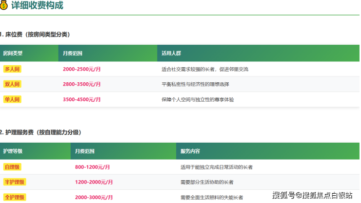 参考价格:3000元/月起(根据护理等级和房间类型差异化定价)