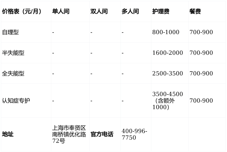 光明社区颐养院收费3月最新!奉贤区3500元起医养结合,地址价格介绍