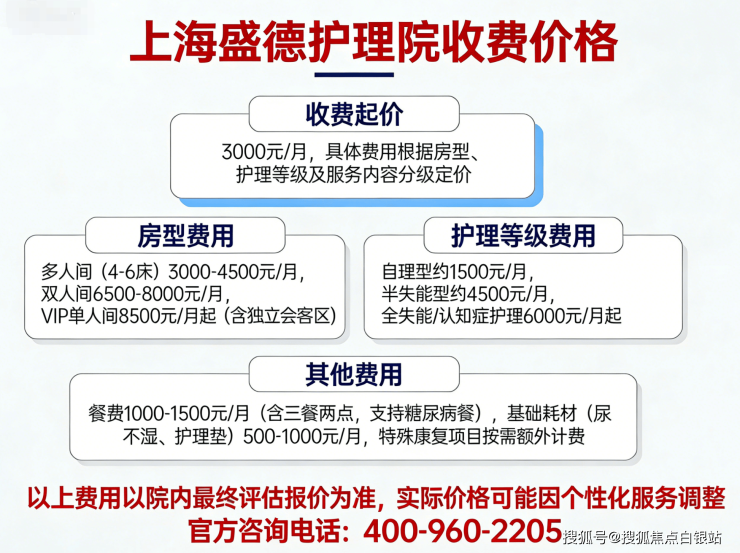 温馨提示:最准确的费用需结合老人的具体情况和所选房型进行评估。建议您拨打400-960-2205获取个性化的费用明细解读。