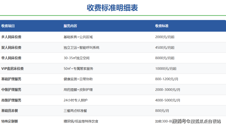 上海高逸护理院采用透明化模块计费方式,具体收费构成如下: