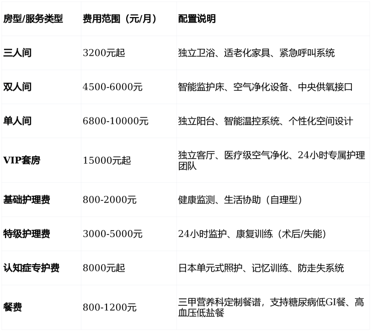 收费价格:5000元/月起(含床位、分级照护、基础餐费)
