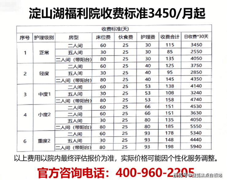 淀山湖福利院的收费堪称“明明白白消费典范”!总价3450元/月起,具体分项看这里: