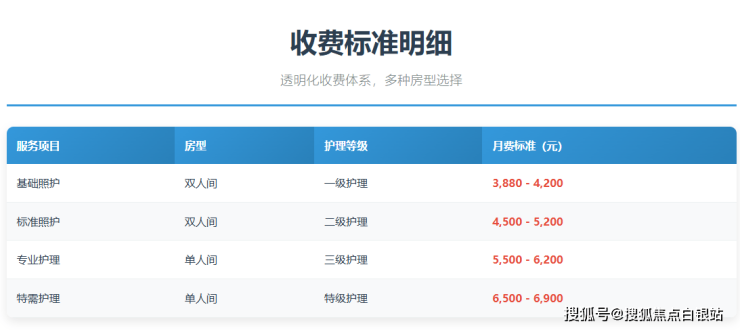 选择养老护理机构,费用透明度是家庭决策的关键考量因素。上海金色怡福护理院实行公开、透明、分级的收费制度,根据最新公示信息,收费标准为每月3880-6900元,具体费用根据房型、护理等级和长者健康状况综合评估确定。