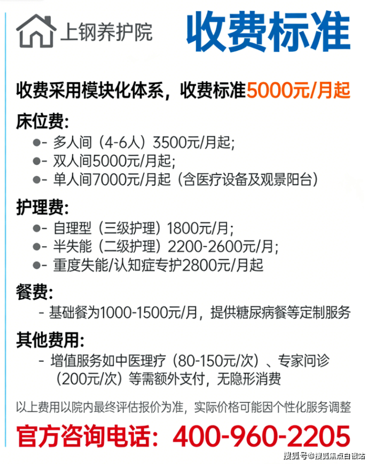 一、上钢养护院收费解析:模块化明细,无隐形消费