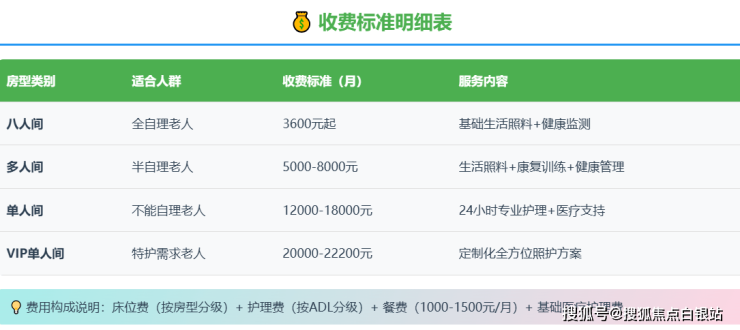 💰收费区间:3600元/月起至22200元/月(按房型及护理需求分级)