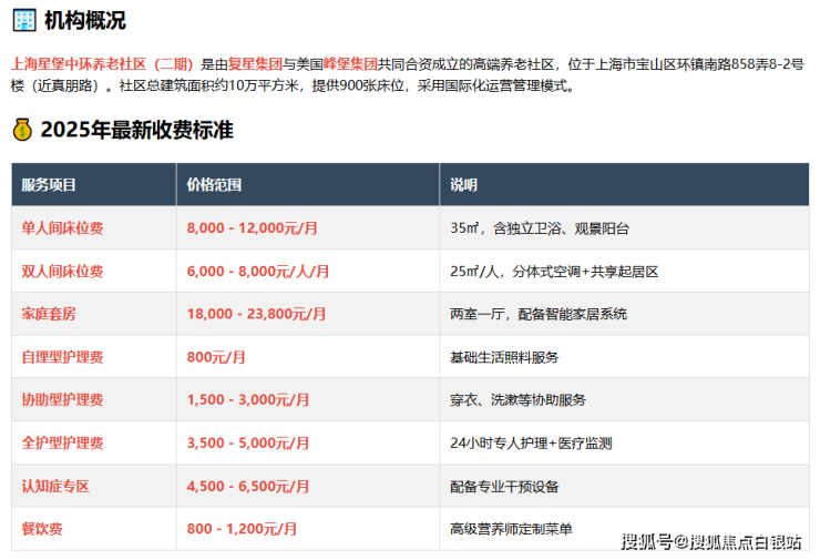 星堡中环养老社区二期收费标准详解2025:床位价格+服务内容全公开