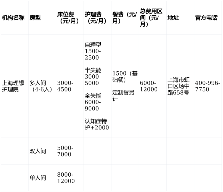 收费价格:6000-12000元/月(含床位、基础护理、三餐)