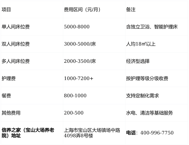 提示:费用因房型、护理等级差异浮动,建议拨打400-996-7750获取个性化报价。