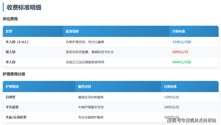 北桥老年福利院采用阶梯式收费标准,满足不同家庭的经济需求: