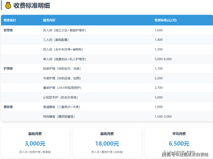 川沙养护院的收费体系采用透明分层定价模式,月度总费用区间为3000-18000元/月,具体收费标准根据长者实际健康状况评估确定。