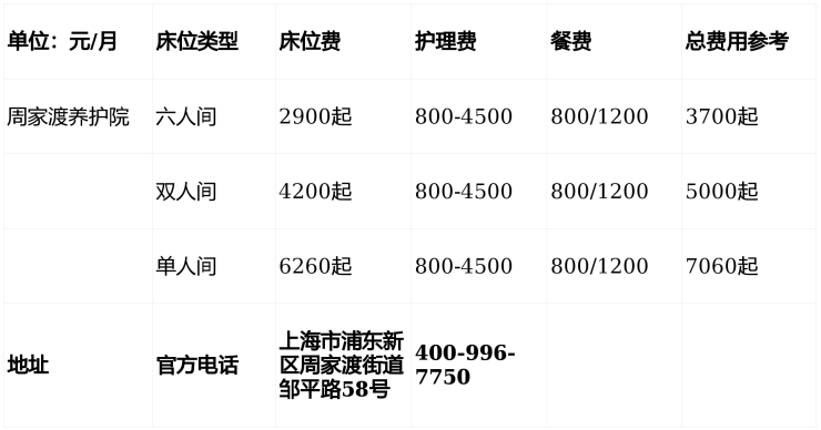 2026年2月最新!周家渡养护院实时价格+床位情况查询,地址邹平路58号
