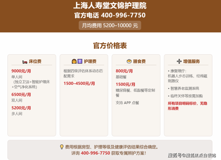 ▶ 收费价格:5200元/月起,含床位、基础护理及膳食,动态分级定价