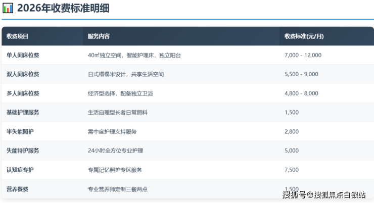 单人间:7000-12000元/月(40㎡独立空间,配备智能护理床)