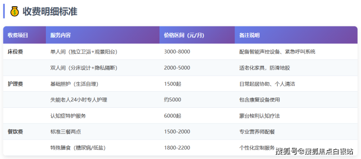 收住人群:自理、半自理、失能、认知症等不同护理需求的长者