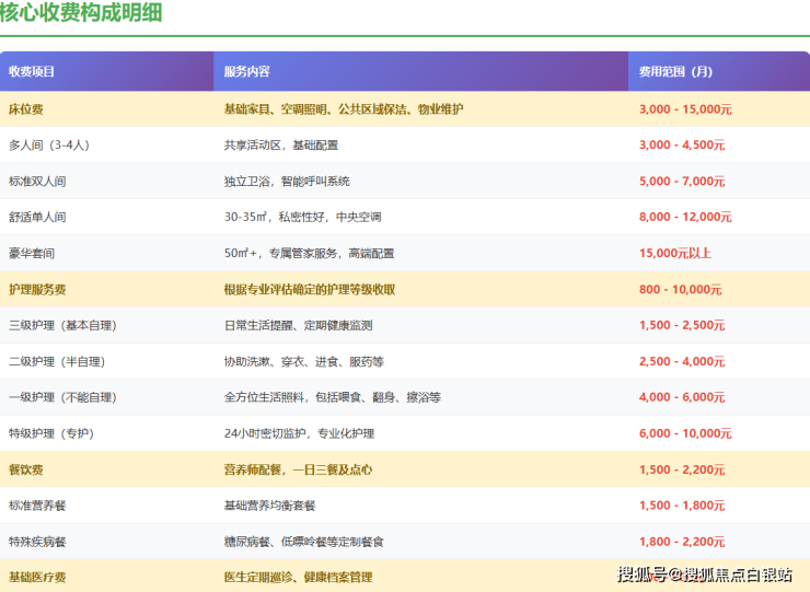 需要特别说明的是,医保定点资质让符合条件的费用获得每日22元补贴(依房型不同),加上长期护理保险的适配,实际自付费用会进一步降低。