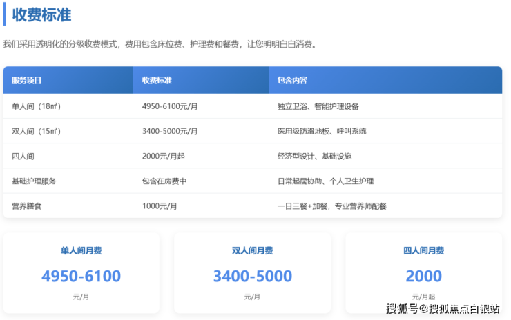 单人间(18㎡):4950-6100元/月,配备独立卫浴、智能护理设备
