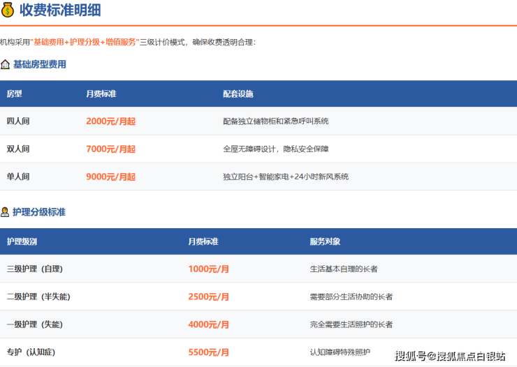 收费标准:4880元/月起,叠加长护险补贴后实际支出可低至2880元/月