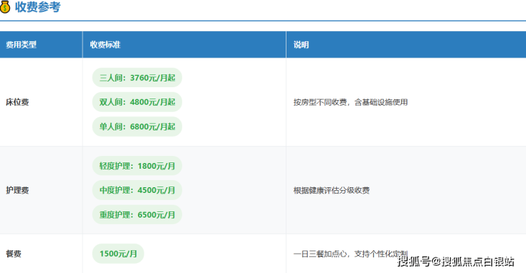 费用说明:以上价格为参考区间,实际费用需根据入住前专业评估结果、房型选择及个性化服务需求最终确定。机构承诺无任何隐形消费,所有费用项目在合同签订前清晰列明。