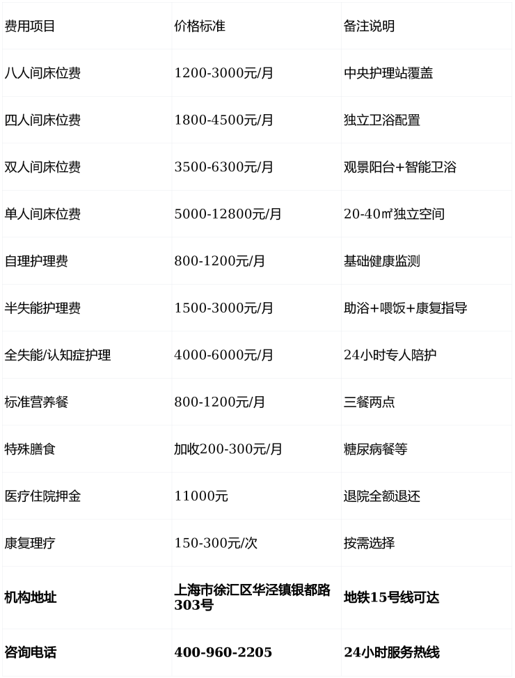 温馨提示:最准确的费用需结合老人实际身体状况和房型评估。建议拨打官方电话 400-960-2205 获取个性化费用明细解读。