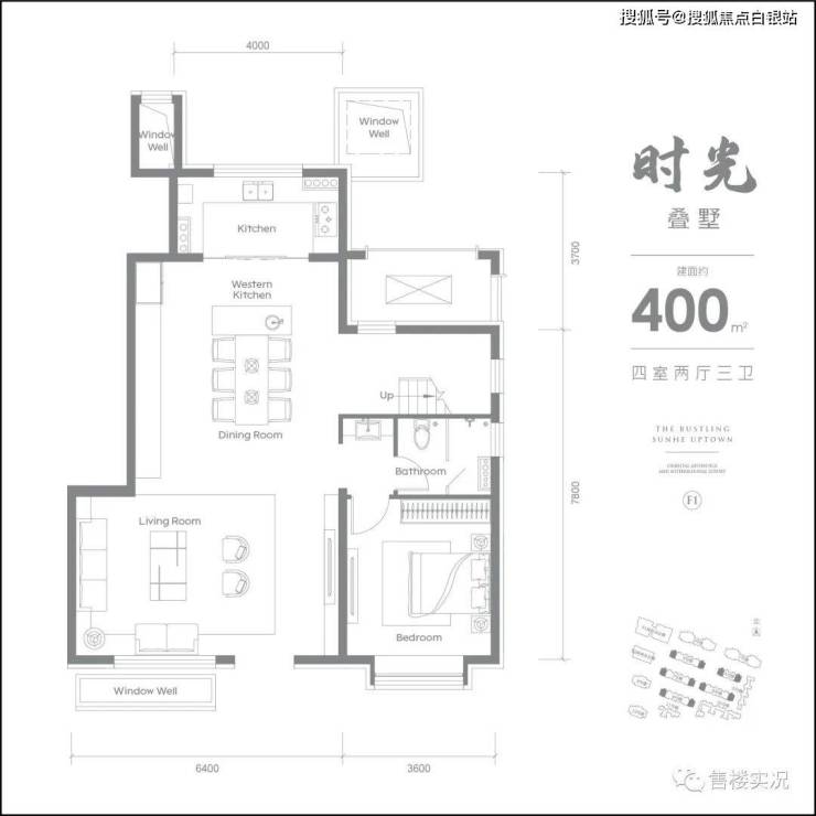 叠拼下叠:400㎡ (地上250/地下150)㎡ (花园约50㎡)