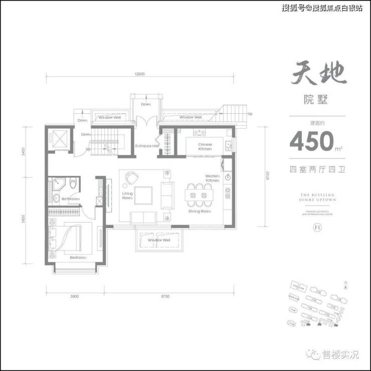 合院:430-455 (地上300 /地下150 )㎡ (露台约30㎡ 花园约100㎡)