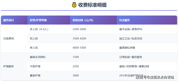 长桃浦第一福利院采用科学的分级收费模式,根据老人的护理需求和房型选择,收费标准如下: