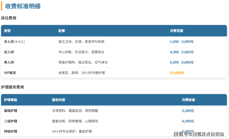认知症专区:针对阿尔茨海默症患者,费用为5000-8000元/月,配备专业康复师与心理疏导服务。