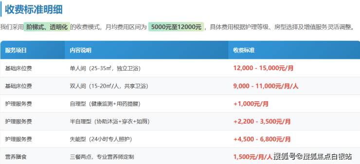 重要提示:以上价格为参考范围,最终费用需根据长者具体情况、房型实际供需情况以及服务细节调整确定。建议通过400-855-0290电话咨询获取个性化报价。